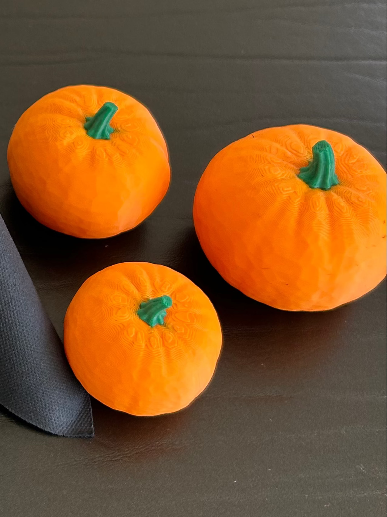 Skab efterårsstemning og hygge med dette sæt af tre 3D-printede græskar. De er perfekte som pynt til stuen, værelset eller halloweenbordet – og kan bruges igen år efter år.